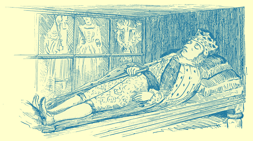 There are only a few funeral effigies extant, but in the pages of history may be found many allusions to them. They can be traced back in Westminster Abbey to the fourteenth century. The earliest example of which we have been able 282 to find any account is that of Edward the First. Dryden, writing in 1658, names, in addition to Edward I., the figures of Henry V., Henry VII., James I., and their queens, also Prince Henry and Queen Elizabeth. The effigies of Edward III., and Phillipa, noticed by Stow in the preceding century, appear to have disappeared before Dryden’s day. It was customary to remove effigies when they were old and shabby, and when the space they filled was wanted for others. Dart, in his “Westmonasterium,” has some notes on the royal effigies. “ There are many of them,” says Dart, “sadly mangled, some with their faces broke, others broken in sunder, and most of them stripped of their robes, I suppose by the late rebels. I observe the ancientest have escaped best, I suppose by reason their cloaths were too old for booty. There is, I take it, Edward III. with a large robe, once of crimson velvet, but now appears like leather. There is Henry V., but I can’t suppose it is that carried at his funeral, for it was made of tann’d leather, but this is of wood, as are all the old ones. The later are of stuff, having the heads only of wood, as Queen Elizabeth, who is entirely stripped, and James I.”