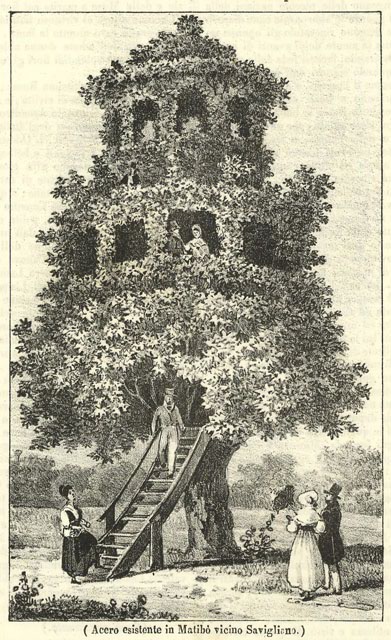 Frustrated by the lack of any new discussion or picture of the tree, I enlisted the help of polyglot Bill Thayer. Since he likes tree-houses, and mysteries, he was happy to help, searching for any mention in Italian and French works.